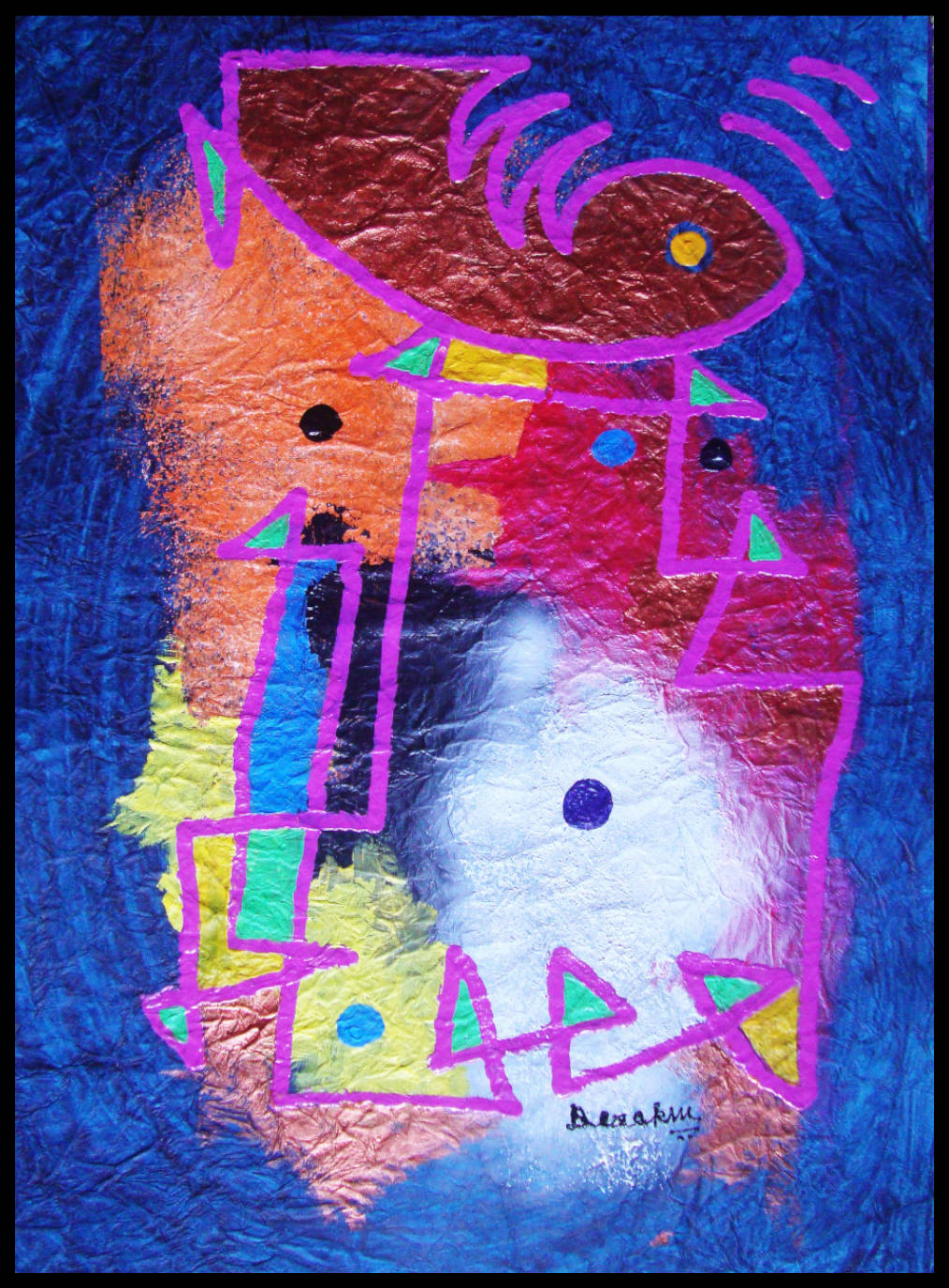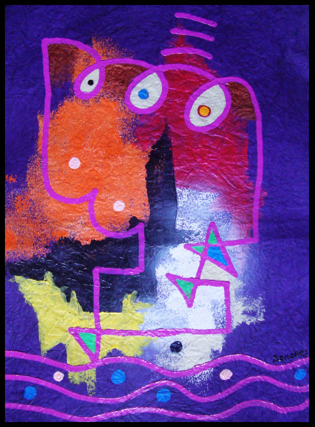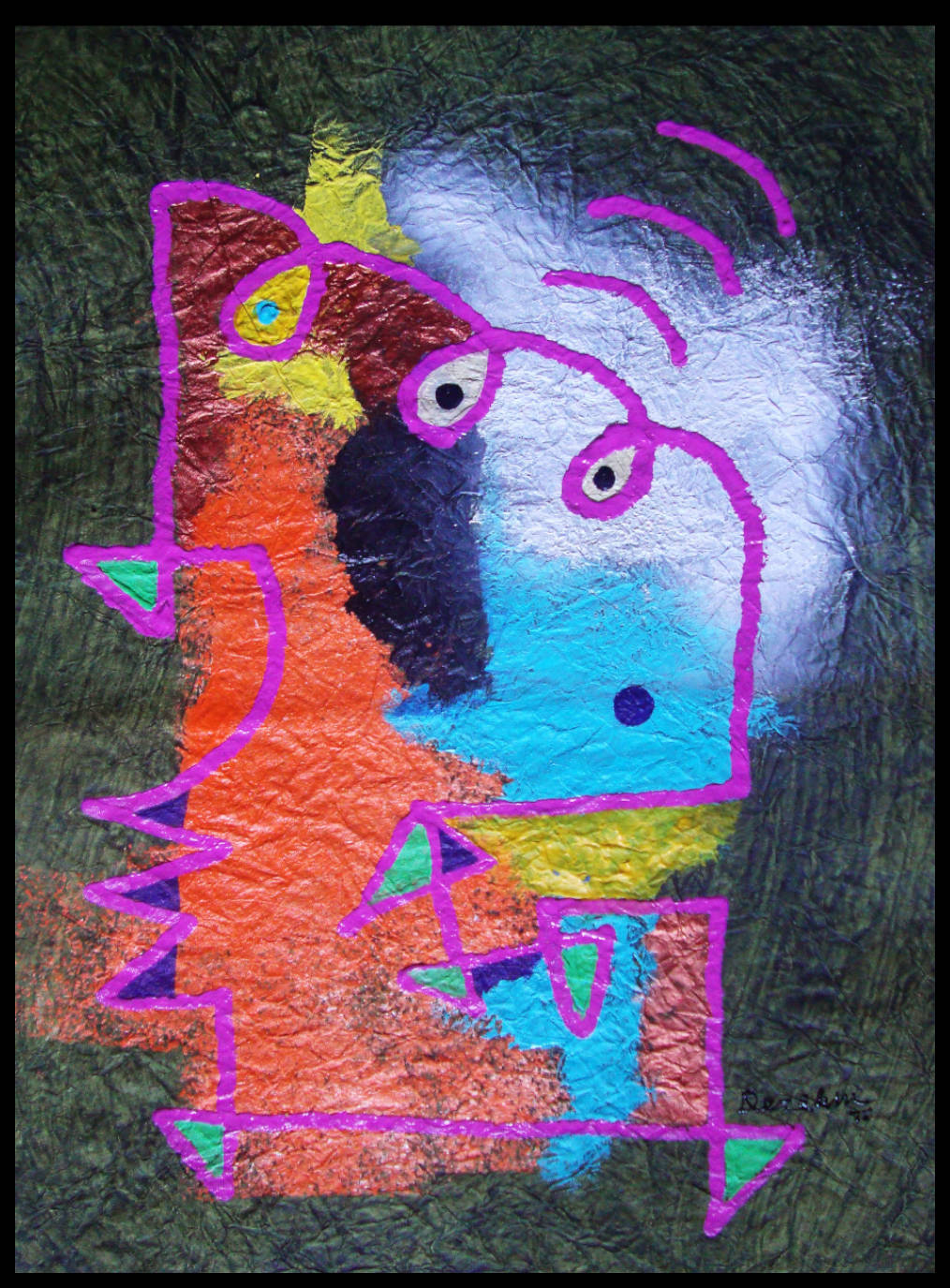 (Acrylic, torn pieces of FELT and art card paper, Oil Pastels)